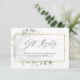 Tarjetas de registro de regalos de boda/desgracia de soltera con marco geométrico dorado de eucalipto de bosque salvaje diseñadas para ser personalizadas rápida y fácilmente según los detalles de su evento.