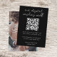 Simple y elegante tarjeta digital boda deseando una buena foto con un moderno diseño minimalista con una elegante tipografía de escritura natural en blanco clásico sobre fondo negro, con un estilo informal de escritura a mano. El diseño se puede personalizar fácilmente con el título, los detalles de pago (Zelle, Venmo, Paypal), el código QR escaneado, el mensaje y la foto para un diseño único de un buen boda. La imagen que se muestra es para fines de ilustracion y sólo se sustituye por la suya. La imagen del marcador de posición es de una pareja feliz. Si necesita ayuda para personalizar este producto, póngase en contacto conmigo con el botón de mensaje y estaré encantado de ayudarle.