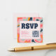 Estilo de los años 70 retro groovy tarjeta personalizada QR Code RSVP boda en tipografía groovy colores pastel incluyendo: rosa, azul y naranja. Esta tarjeta es fácilmente editable. Si necesita ayuda para la personalización de este producto o necesita más productos para esta colección, por favor, envíeme un mensaje a través de Zazzle.