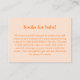 This matching “Books for Baby” enclosure card features the same retro orange abstract check pattern, designed to coordinate seamlessly with the full baby shower invitation suite. The warm peach background and playful typography gently invite guests to bring a favorite book in place of a traditional card, helping build a meaningful library for baby. A thoughtful detail that adds personality and intention to the celebration while keeping the overall look cohesive and modern. Ideal for baby showers with a fun, retro-inspired aesthetic.