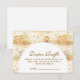 Un diseño de safari de estilo cuento de hadas con suaves animales bebé de acuarela, incluyendo leones, jirafas y elefantes rodeados de suave vegetación de la jungla y delicados detalles botánicos. La paleta cálida y neutral de crema, oro miel y suave oliva crea un estética atemporal inspirada en la naturaleza, mientras que el elegante diseño arqueado deja espacio hermoso para detalles personalizados del evento.