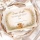 Un encantador diseño campestre que presenta un ternero esponjoso, un corderito dulce y pollitos amarillos diminutos entre las suaves flores silvestres de la pradera. El fondo cálido de pergamino y los tonos terrosos suaves crean una atmósfera acogedora y rústica con un toque delicado de cuento. La vegetación delicada enmarca el diseño mientras que la ilustración de animales de granja añade calidez y personalidad. Perfecto para una celebración neutral con temática rural y encanto clásico de granja.