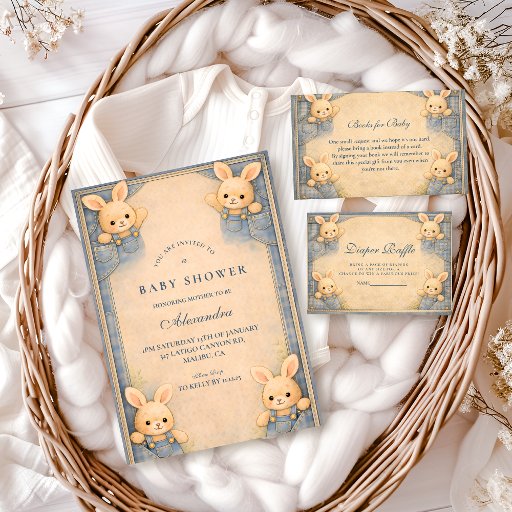 Celebre a un pequeño en camino con esta invitación para baby shower Blue Jeans, inspirada en detalles clásicos de denim y encanto rústico. Con un cálido centro estilo pergamino enmarcado por texturas de jeans azules ilustrados, costuras cosidas y flores suaves y neutras, este diseño se siente acogedor, atemporal y sin esfuerzo encantador. Perfecto para un baby shower campestre y desenfadado, una celebración con tema western, o para cualquiera que ame un look denim relajado y totalmente americano. Personalice fácilmente con los detalles de su evento para una invitación de baby shower memorable y con estilo.