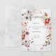 La decoración de esta tarjeta de la recepción de bodas presenta un bonito fondo blanco angustiado con delicados spray de flores de color rosa, marrón, blanco, violeta y verde. Es romántico con un toque de cosecha. Creado por Simply Farmhouse Press, es parte de la romántica suite Boda floral verde rosada de naipes.