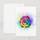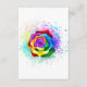 Rosa grande y floreciente con pétalos de arco iris sobre fondo blanco, pintado con salpicaduras de pintura colorida y brillante. 3.ª