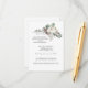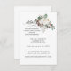 La vegetación de los pinos con rosas blancas hace una elegante tarjeta de detalles florales de boda. Se acentúa con bayas sutiles y pinos. La caligrafía honra el diseño para distinguirlo de manera simple, pero efectiva. Es femenina y elegante, con una paleta editada de blanco, verde pino profundo y rojo suave.