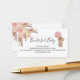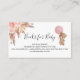 Una solicitud de reserva, un boleto para una ducha para bebés. Un fondo blanco. Decorada con oro rosa, flores rosas rubias, pampas y un oso de peluche sosteniendo un globo. Envíe estas tarjetas de gabinete con las invitaciones correspondientes a la ducha de bebé