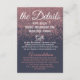 Glamoroso, moda y elegante imitación imprimió brillantemente rosa purpurina de oro en azul marino, tarjeta de detalles de información Boda. Este diseño clásico y sofisticado es perfecto para un graduado elegante, elegante y de moda. Personalice con su propio mensaje en la parte delantera y un monograma personalizado inicial en la parte posterior. Todo el diseño de impresión fotográfica.