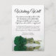 Esta bonita tarjeta de recinto boda es una forma de gusto de pedir a sus huéspedes dinero o dinero en lugar de regalos. El elegante diseño presenta un rosa de color verde esmeralda que refleja el agua con olas y ondas. El título dice "Deseando bien" con un lindo poema leyendo: Y la señora ya tenemos una casa llena de platos pero si quiere darnos un regalo un regalo de algo de dinero sería muy agradable! Hay espacio en la parte inferior para una breve nota y firma.