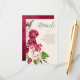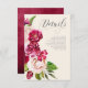Una florida y brillante multitud de rosas en tonos burdeos y crema es el punto fuerte de muchas de las piezas de esta suite boda que también cuenta con un elegante guión de texto y un diseño moderno. La tarjeta de detalles a juego que se muestra aquí incluye todo lo anterior, así como un hermoso resumen de acuarela al revés en rico borgoña y ciruela. Agregue fácilmente cualquier información pertinente sobre su evento utilizando la plantilla proporcionada. Busque ID584 para ver los productos coincidentes con este diseño.