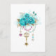 Llave de oro antiguo con rosas turquesa de moda decorados con hojas de oro blanco y cuentas rosas y azules. Color de moda. Rosas turquesas. Oro blanco. Tifanía azul.