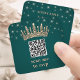 Tarjeta De Recepción Rose Gold Crown Scan Me Quinceañera QR RSVP Green