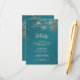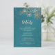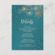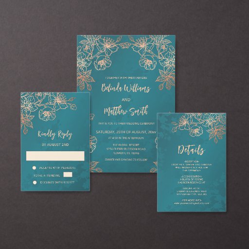 Tarjeta De Recepción Rose Gold Floral Line Art Teal Wedding