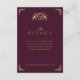 Dé un paso atrás en el tiempo con nuestra sorprendente carta de cierre de detalles de la musa real boda inspirada en la era icónica de las edades medievales y los reinos de fantasía. Nuestro diseño de boda musa real es perfecto para parejas que buscan una estética medieval suntuosa, regia y a la vez moderna. Cada elemento es dibujado a mano por nosotros, hasta el último detalle. El ciruelo real profundo, combinado con acentos dorados ricos y el emblema de la familia de los leones reinos, capta la sofisticación y la nobleza. En el reverso se muestra nuestro patrón de acuarela a escala de dragón morado pintado a mano en rojo profundo, ciruela inspirada en el juego de dragón tronero. Todos los trabajos artísticos son meticulosamente dibujados a mano por nosotros, para crear nuestros originales diseños bodas. Personalice el texto, la fuente y los colores para que se ajusten a sus preferencias de diseño.
