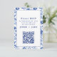 Esta elegante tarjeta de gabinete RSVP combina la belleza intemporal de los patrones florales azules inspirados en Delfsoftware con la comodidad moderna. Esta tarjeta, con sus intrincadas flores azules y blancas sobre un fondo blanco limpio, le da un toque de encanto clásico a su suite de papelería boda. El código QR es fácil de escanear y permite a los huéspedes acceder rápidamente a RSVP en línea, mientras que el vintage borde floral mantiene el estilo sofisticado y tradicional. Perfecto para parejas que quieran combinar elegancia del viejo mundo con funcionalidad contemporánea, esta tarjeta es un hermoso y práctico complemento a sus invitaciones nupciales. Si necesita ayuda para agregar su propio código QR en cualquier color, por favor contáctame.