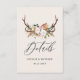 Tarjeta De Recepción Rustic Antler Floral Wedding woodland Boho Details