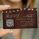 Tarjeta De Recepción Rustic barn wood string lights wedding QR RSVP