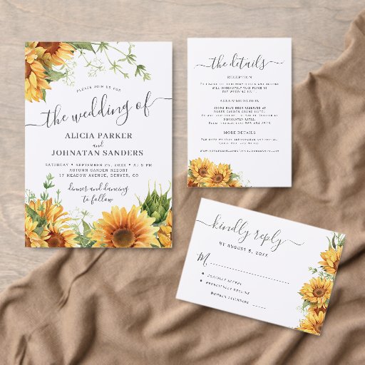 Modern rustic boho watercolor sunflower wedding guest information details invitation black and white insert card with a simple handwriting typography script.