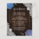 Provide your guests with important details with this rustic purple and blue floral wedding enclosure card featuring blue and purple hydrangea flowers on a barn wood background adorned with white floral lace.