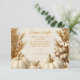 El diseño de una acogedora ducha para bebés inspirada en el otoño con calabazas blancas acuarelas, trigo seco y ramas de algodón suave. Con su encanto rústico de cosecha y sus tonos neutros, este diseño crea el marco perfecto para una cálida celebración de otoño.