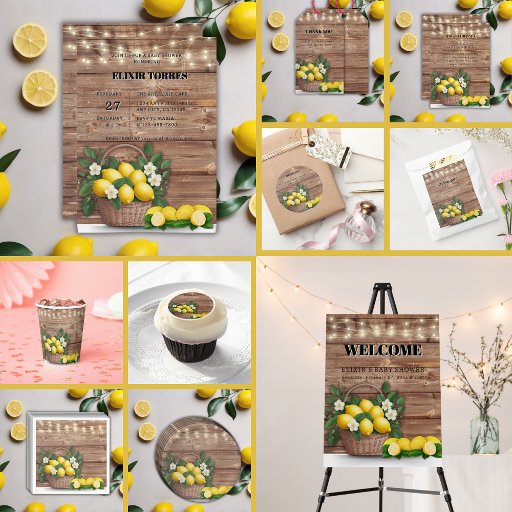 Rustic Lemon Basket Modern Cute Baby ShowerDiseñado por Elixir Torres