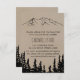 Esta rústica tarjeta de recepción de bodas de montaña con carpintería es perfecta para un boda de bosques. El diseño, inspirado en la naturaleza, presenta la silueta de un bosque de pinos y montañas sobre un falso papel de kraft. Personalice esta tarjeta de gabinete de detalles con su información de recepción e incluya también la dirección de su sitio web boda. Nota: Esto no está impreso en papel kraft real. Es un gráfico de alta calidad hecho para parecer un papel kraft.
