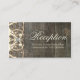 Esta carta de recepción rústica de pasto y madera es de moda y está orientada a la novia tradicional. Un fondo de madera angustiada con detalles de cuentas metalizado y encaje vintage es perfecto para un boda rústico de campo o vintage. com