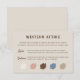 ¡personalizar fácilmente los colores! Haga clic en "Editar este diseño", seleccione cualquier color a la derecha y elija entre la paleta o introduzca su código HEX para que coincida con su paleta boda. Guíe a sus huéspedes con estilo con esta tarjeta de inserción de Boda de atuendos occidentales. Perfecto para bodas rústicos, de campo o de temática vaquera, esta tarjeta presenta fuentes elegantes, swatches de colores coordinados y cuidadosas sugerencias de código de vestimenta para damas y caballeros. Una encantadora y práctica adición a cualquier boda de rancho, celebración de graneros o evento occidental al aire libre.