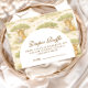 Un diseño de safari de estilo cuento de hadas con suaves animales bebé de acuarela, incluyendo leones, jirafas y elefantes rodeados de suave vegetación de la jungla y delicados detalles botánicos. La paleta cálida y neutra de crema, oro miel y suave oliva crea un estética atemporal inspirada en la naturaleza, mientras que el diseño arqueado elegante deja un hermoso espacio para detalles personalizados del evento.
