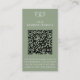 Una tarjeta rsvp de la web de boda verde claro muy elegante y simple con código QR. Con fondo verde salado rústico quemado. Y monograma o iniciales con foto de personalizable en la parte posterior. Toda la información es personalizable para que puedas usar el sitio web de knot o cualquier enlace del sitio web de bodas en el código QR para ser escaneado por tus invitaciones.