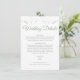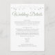 Esta hermosa tarjeta de alojamiento está diseñada para proporcionar a sus huéspedes información adicional sobre la recepción, alojamiento, organización de viajes, registro, sitio web, direcciones, o cualquier otro detalle adicional que sus huéspedes puedan necesitar. Presenta un diseño sencillo pero elegante con texto verde sabio y gris sobre un fondo blanco con un borde floral de Relieve metalizado falso plateado.