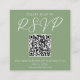 Tarjeta De Recepción Sage Green White Script QR Boda de código RSVP