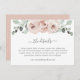 Elegante tarjeta de clausura floral con rosas de acuarela pintados en color rosa rosa polvoriento y verde en tonos verde salado. Esta preciosa tarjeta de Boda con tema botánico forma parte de una suite nupcial perfecta para un boda de primavera o verano.