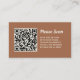 Estas tarjetas de cierre de sitios web bodas de moda presentan colores bóvedos neutros de crema marrón y marfil con texto de estilo retro. Hay un código QR escaneado al revés.