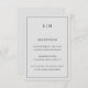 Tarjeta de gabinete simple Boda con un diseño moderno y elegante con su monograma de dos letras en la parte superior junto con la información de recepción rodeada de un borde delgado. Todos los elementos de diseño están en negro sobre un fondo gris claro y pueden cambiarse en la herramienta de edición de diseño. Una moda y un diseño de diseño, ideal para una pareja minimalista. Estas tarjetas son una adición perfecta a tu suite si tu recepción se realiza en un lugar diferente a tu ceremonia.