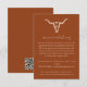 Sencilla Tarjeta de Recepción Bohemia Occidental Cráneo de Vaca - Diseño simple y minimalista que presenta un cráneo de vaca bohemio occidental sobre un fondo naranja desierto. Todo el texto y los colores son completamente editables. La parte posterior de la tarjeta de alojamiento incluye un código QR para su sitio web de boda.