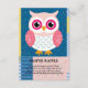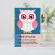 Tarjeta De Recepción Sexo de Lechuza Rosa Cute Woodland Baby Shower Neu
