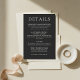 Tarjeta De Recepción Simple Charcoal Classic Wedding Details