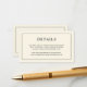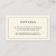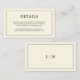 Tarjeta de inclusión de boda simple y pequeña con un diseño moderno y elegante con tus detalles rodeados de un borde delgado y tu monograma en la parte posterior. Todos los elementos de diseño están en negro sobre un fondo neutro marfil / crema y pueden ser cambiados en la herramienta de edición de diseño. Un diseño chic y elegante que es ideal para una pareja minimalista. Utiliza estas tarjetas de inclusión para proporcionar direcciones y cualquier otro detalle importante que tus invitados necesiten saber, como alojamiento de hotel, estacionamiento, información de transporte, etc.
