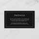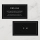 Simple tarjeta de gabinete boda pequeña con un diseño moderno y elegante con sus detalles rodeados por un borde delgado y su monograma en la parte posterior. Todos los elementos de diseño están en blanco sobre un fondo negro y pueden cambiarse en la herramienta de edición de diseño. Una moda y un diseño de diseño, ideal para una pareja minimalista. Utilice estas tarjetas para proporcionar instrucciones y cualquier otro detalle importante que sus huéspedes puedan necesitar, como alojamiento en el hotel, aparcamiento, información de transporte, etc.
