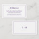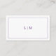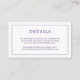 Simple tarjeta de gabinete boda pequeña con un diseño moderno y elegante con sus detalles rodeados por un borde delgado y su monograma en la parte posterior. Todos los elementos de diseño están en color púrpura y pueden cambiarse en la herramienta de edición de diseño. Una moda y un diseño de diseño, ideal para una pareja minimalista. Utilice estas tarjetas para proporcionar instrucciones y cualquier otro detalle importante que sus huéspedes puedan necesitar, como alojamiento en el hotel, aparcamiento, información de transporte, etc.