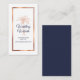 Proporcione a sus huéspedes todos los detalles de su boda en su sitio web con esta elegante tarjeta de presentación con escritura moderna, texto azul marino, incluyendo una artística palmera dorada y un marco de cobre rosa metálico en la parte delantera de la tarjeta. En la parte trasera hay un fondo azul marino de coordinación.