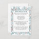 Eleva tu papelería de bodas de invierno con nuestra encantadora tarjeta de Boda Snowfall Ferns. Delicada vegetación acuática en tonos suaves de azul ventilado, chorro de agua y rosa viejo, está bellamente enmarcada en un marco clásico, lo que le da un toque de fantasía y romanticismo a su día especial.