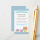 Animar a los clientes a traer un libro infantil para su pequeño con este bonito prospecto de tarjeta de solicitud que puede añadir a sus invitaciones. El diseño tiene un osito de peluche lindo sentado y leyendo un libro con una selección de libros coloridos al lado. En la página inversa está un patrón de puntos de polka azul. ¡La paleta de colores y el diseño son más adecuados para las mamáes que esperan niños! Personalice fácilmente los datos de su fiesta.