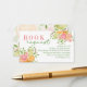 Una tarjeta de presentación para la solicitud de un libro de ducha para bebés con cítricos acuarelas como naranjas, pomelo rosa, limones y limas con acentos florales en colores rosa, naranja, verde, melocotón y amarillo. Parte de una colección.