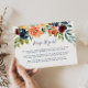 Esta tarjeta de solicitud de receta de boda floral elegante multicolor es perfecta para una ducha de boda simple. El diseño presenta ramilletes dibujados a mano de flores rosadas, amarillas, borgoña, rojas, índigo y follaje verde, inspirando belleza natural.