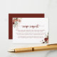 Esta tarjeta de solicitud de receta de boda floral rústica dorada es perfecta para una ducha de novia simple. El diseño presenta flores marsala, rosadas, rosadas, borgoña y doradas pintadas a mano con hojas verdes dispuestas en hermosas guirnaldas.