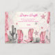 ¡Celebra con estilo western brillante con este diseño de vaquera disco rosa! Con bolas de discoteca brillantes, botas de vaquero rosas y cactus del desierto, este diseño juguetón combina el encanto country con un toque moderno de glamour. Perfecto para una fiesta de bebé con tema western o rodeo con un ambiente divertido y femenino. ¡Personaliza el texto para hacerlo único!