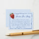Books instead of a card baby library request card strawberry themed whimsical hand drawn blue Books For Baby baby shower invitation enclosure card. Request that guest bring books instead of a card to help build your baby's library with this editable enclosure card.