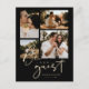 This stylish wedding enclosure card features a bold black background enhanced with faux gold accents, creating a striking and contemporary contrast that feels both modern and refined. The layout presents a well-balanced four-photo collage, allowing you to showcase meaningful moments of the couple in a visually engaging and cohesive way. Clean, modern typography complements the subtle gold shimmer, resulting in a polished design that stands out while maintaining elegance and clarity.